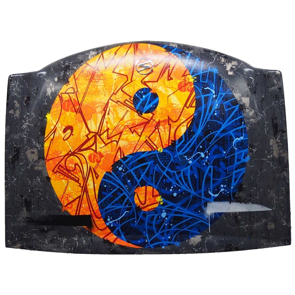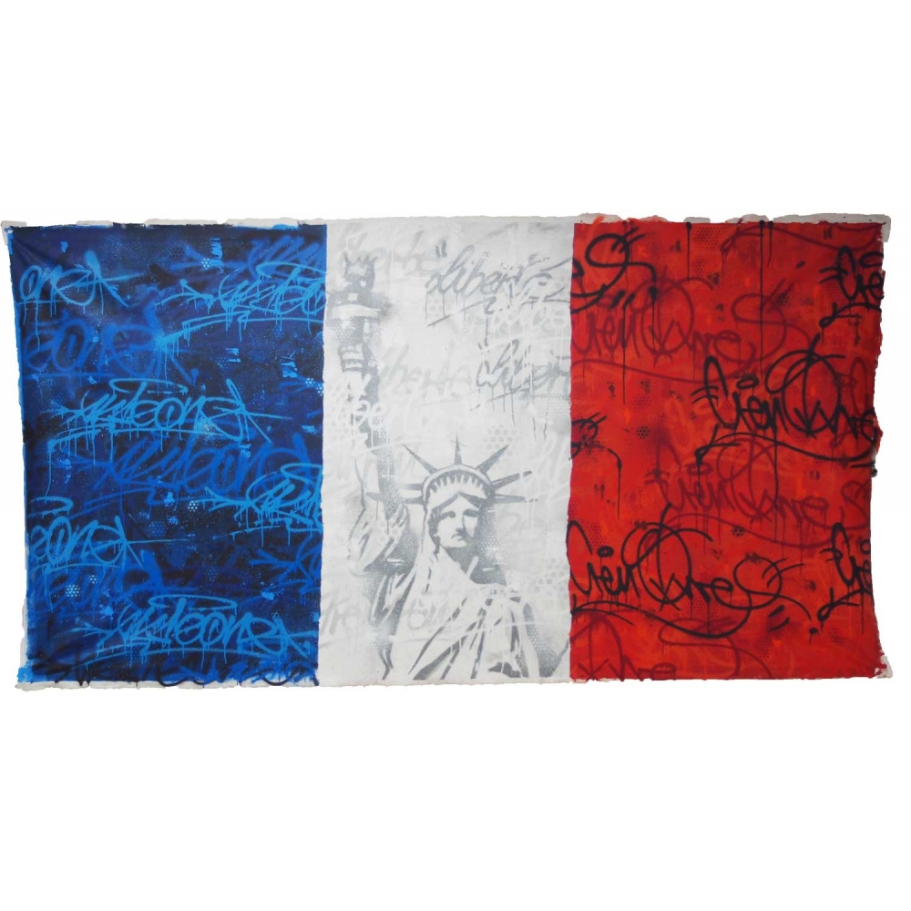 Acrylique sur bâche tendue, sans châssis. Réalisée en live à la galerie à l'occasion des 30 ans de la chute du Mur de Berlin.