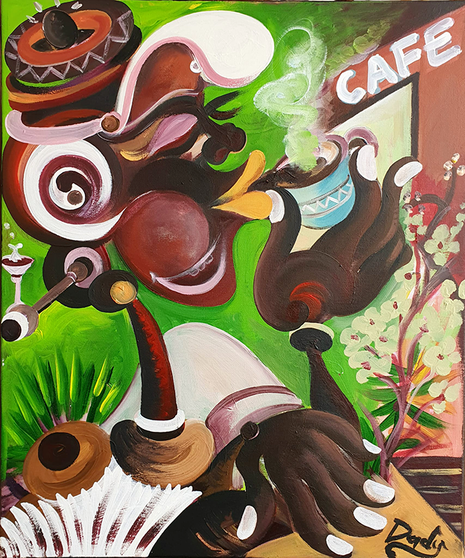 Telle une renaissance, Dady nous ouvre à sa peinture malgré sa situation illégale qui sera finalement régularisée en 2022 et définitivement juste avant son exposition à la galerie Audet septembre 2024.