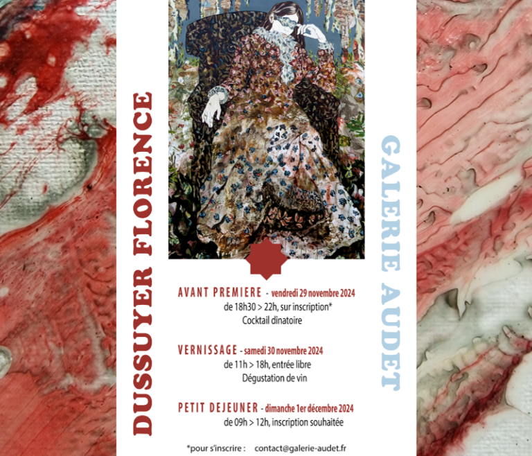 AVANT PREMIERE : vendredi 29 novembre 2024 à l’occasion d’un cocktail dînatoire en présence de l’artiste SUR INSCRIPTION par email : contact@galerie-audet.fr en savoir + VERNISSAGE puis samedi 30 novembre